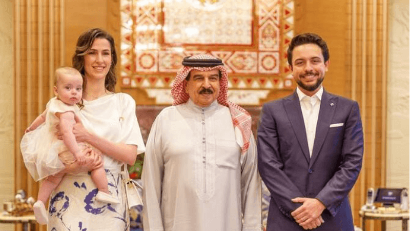 Princess Iman bint Al-Hussein, the baby daughter of Jordan’s Crown Prince Hussein and Princess Rajwa, has made her first official trip abroad. The eight-month-old royal visited the Kingdom of Bahrain with her parents.